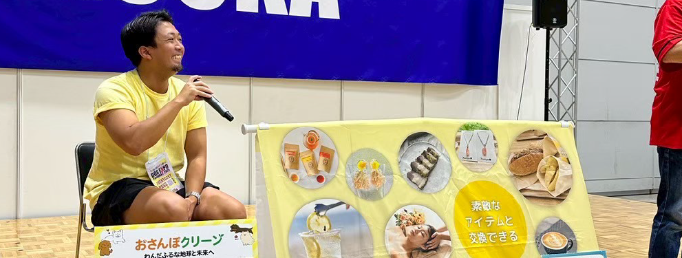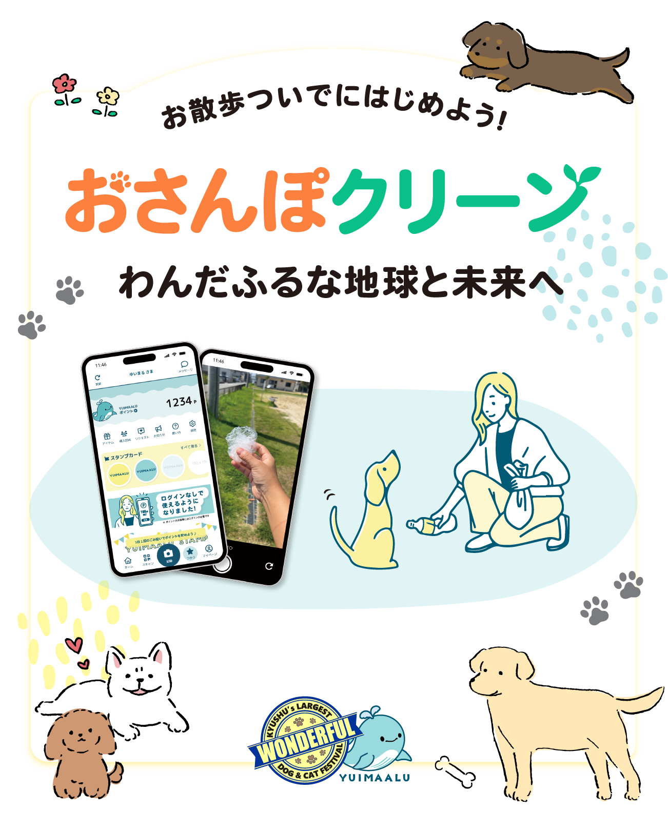 わんだふるグループ主催のイベント会場で、ペットオーナー様にごみ拾いをするお声かけをしています。アプリのダウンロードの特典をはじめステージでは環境やマナーについて、楽しく学べる企画などを実施しています。